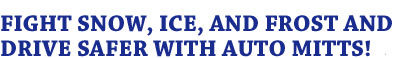 Never again will you chip away at dangerous ice build up, risking damage to your precious vehicle or limited sight while driving. With Auto Mitts you always have a clean, clear, and safe driving experience... every time... all winter long!